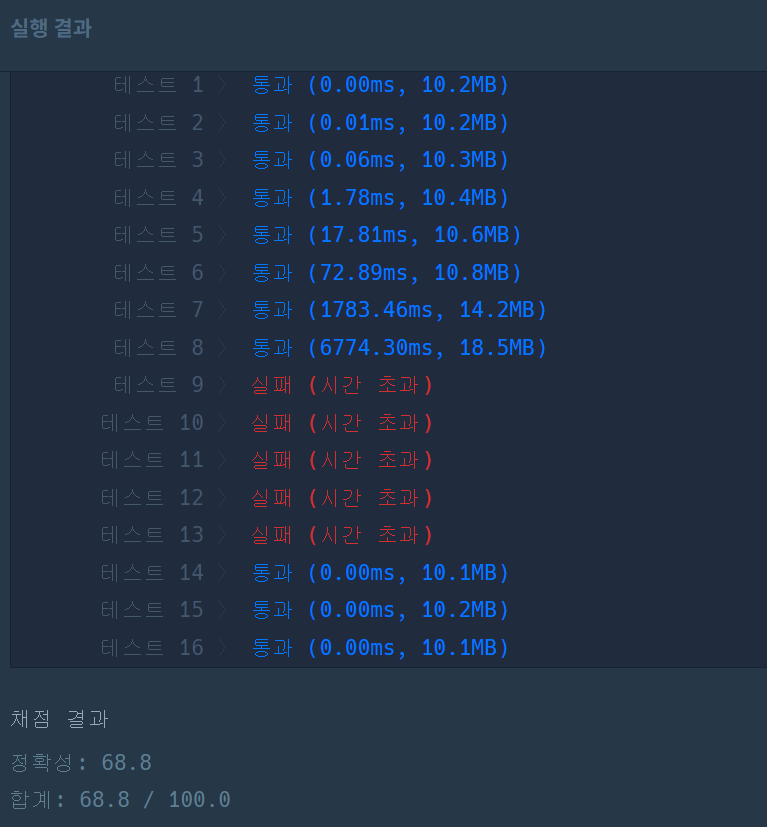 dict 자료형을 사용해도 9~13번 테스트는 시간이 꽤나 오래 걸린다.